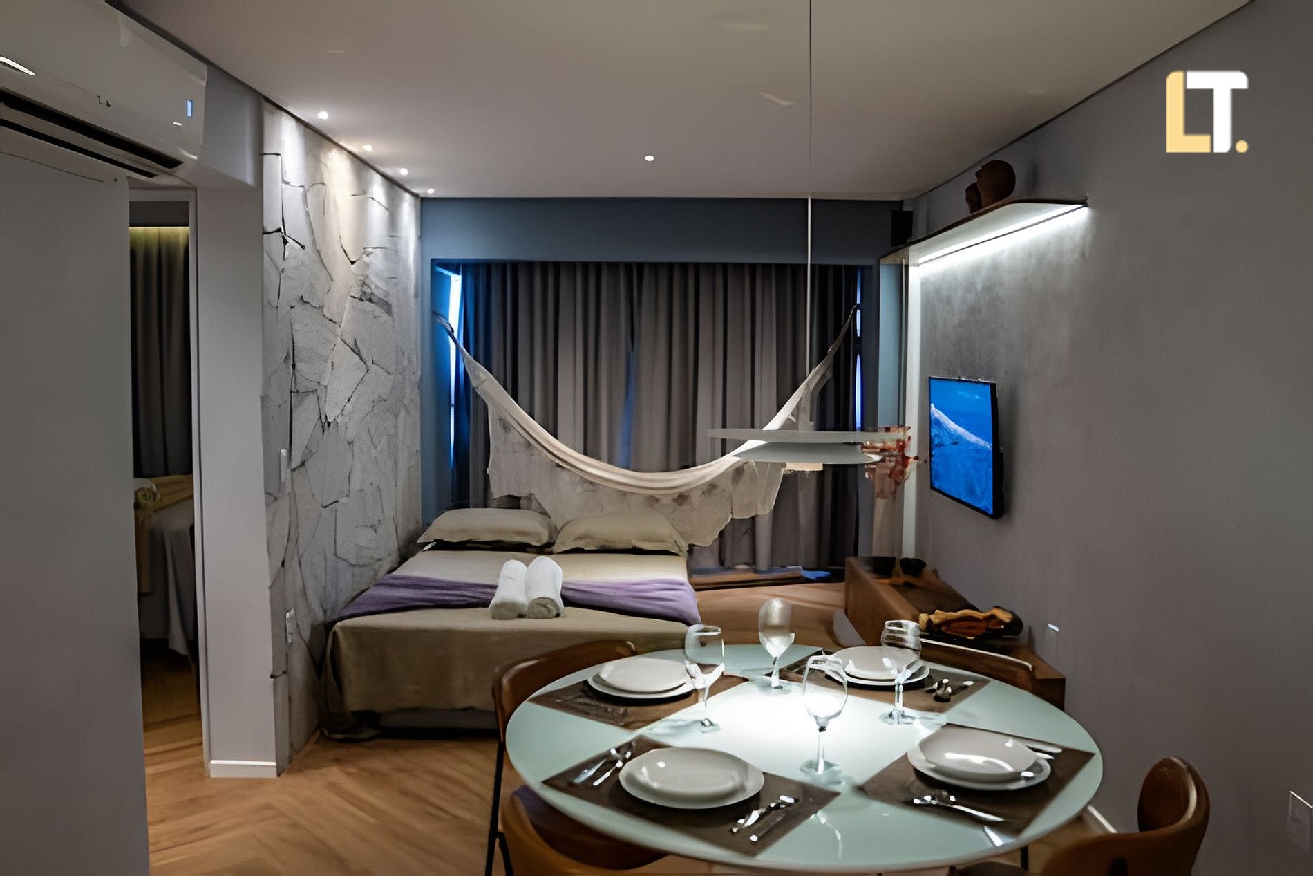 - Sala de Estar com Sofá Cama + Ar condicionado