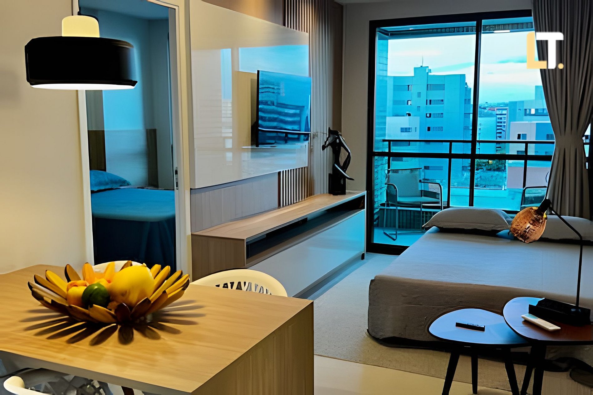 *RECEPÇÃO 24H* Após o seu horário de checkin, nossa portaria receberá você. * SUÍTE + Cama de casal + AR Condicionado + Armários + Secador de cabelo + Ferro de passar *SALA DE ESTAR + Sofá-cama (Casal) + TV Smart e canais locais + Ar condicionado *BANHEIRO + Chuveiro (quente/Frio) + Toalhas + Sabonete Líquido p/ as mãos * COZINHA + Fogão + Liquidificador + Taças + Sanduicheira + Utensílios + Cafeteira *ÁREA EXTERNA(LAZER) + Academia + Piscina + Coworking + Mercado 24h