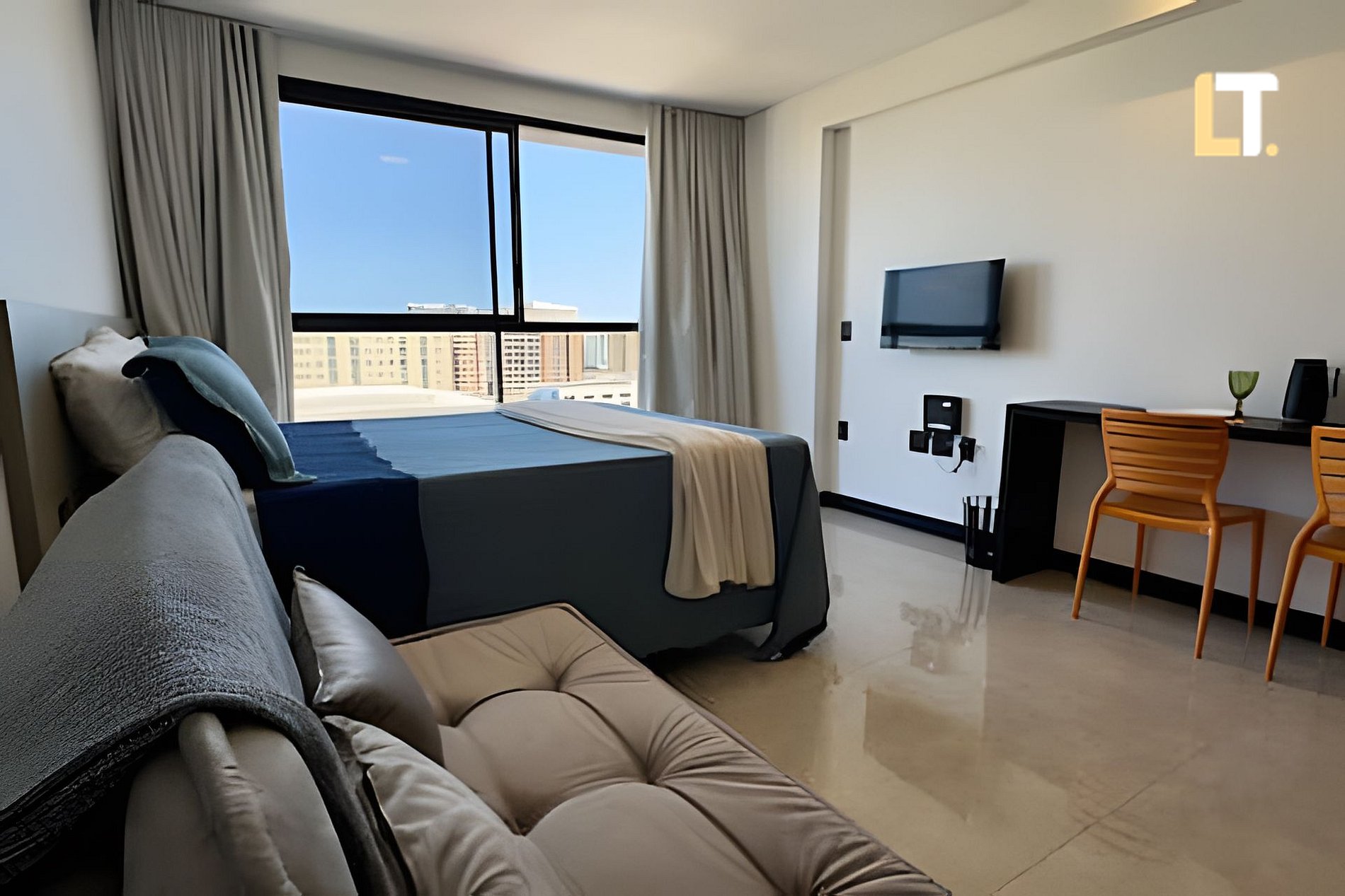 *RECEPÇÃO 24H* Recebemos você em qualquer horário desde que seu checkin seja a partir das 14h *QUARTO +Cama de casal QUEEN + AR Condicionado + Armários + TV Smart *JANTAR E ESTAR + Sofá 2 lugares + Mesa de Jantar (2 cadeiras) *BANHEIRO + Chuveiro (quente/Frio) + Toalhas + Secador de cabelo + Passadeira a vapor + Sabonete Líquido p/ as mãos * COZINHA + Fogão de indução + Panelas + Taças + Coador de café + Sanduicheira + Utensílios *ÁREA EXTERNA(LAZER) + Academia + Piscina + Brinquedoteca +Aluguel de bicicletas e patinete(consultar taxas) + Lavanderia terceirizada (custo adicional) + Restaurante com café da manhã, almoço e jantar na recepção do prédio (Custo Adicional)