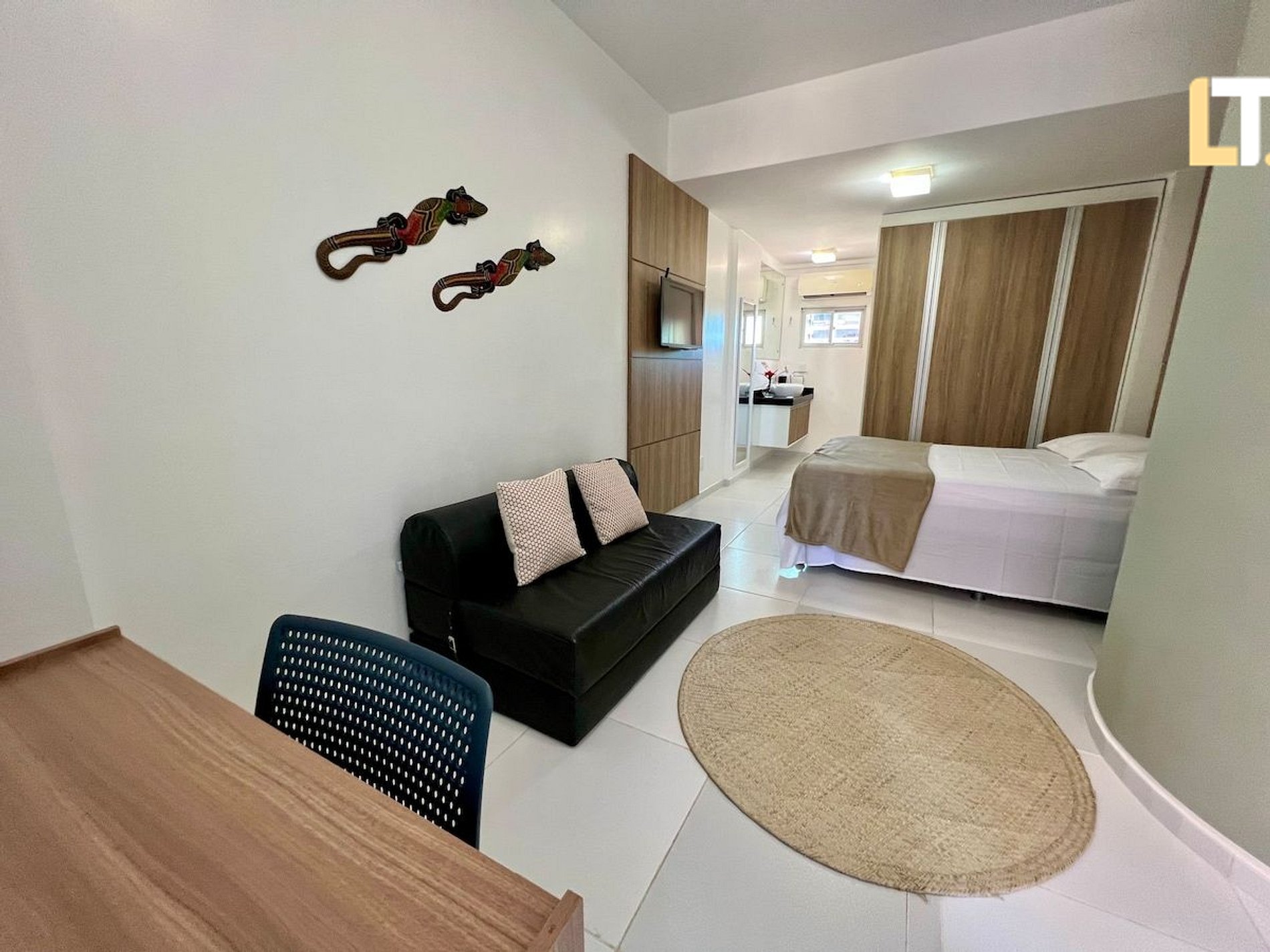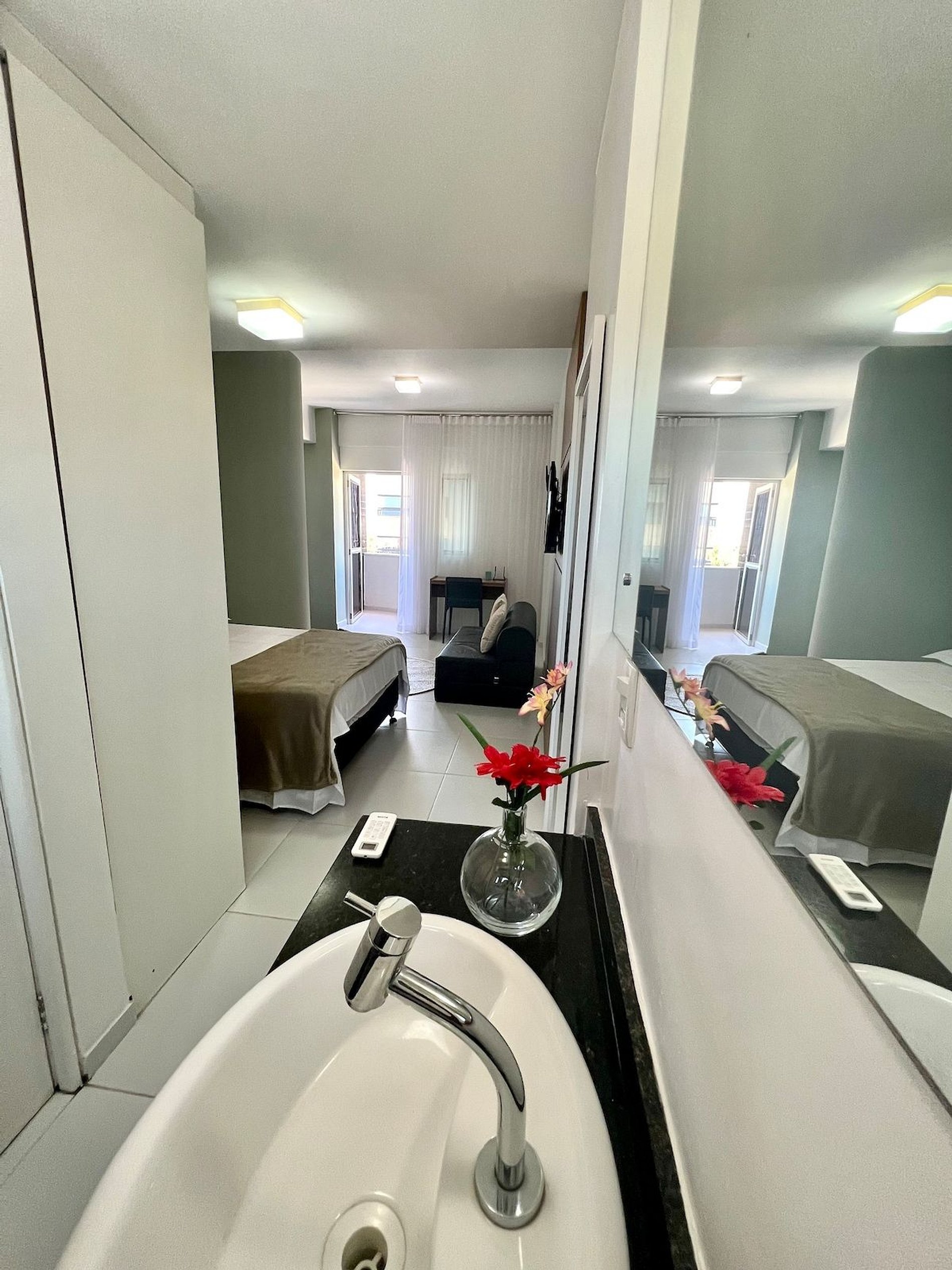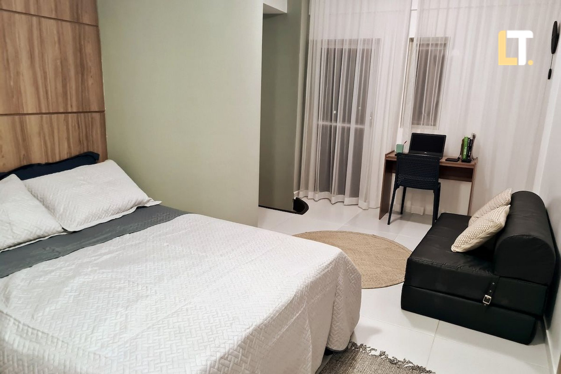 *RECEPÇÃO 24H* Recebemos você em qualquer horário *QUARTO + Cama de casal + 2 Colchões de Solteiro + 1 Sofá-cama para crianças *SALA DE ESTAR + Sofá-cama (Casal) + TV Smart e canais locais + Ventilador *BANHEIROS + Chuveiro (quente/Frio) + Toalhas + Sabonete Líquido p/ as mãos * COZINHA + Fogão + Microondas + Taças + Sanduicheira + Garrafão de água + Utensílios *Disponibilizamos 1 (um) enxoval de cama e banho por hóspede.* Consulte taxas para kit extra