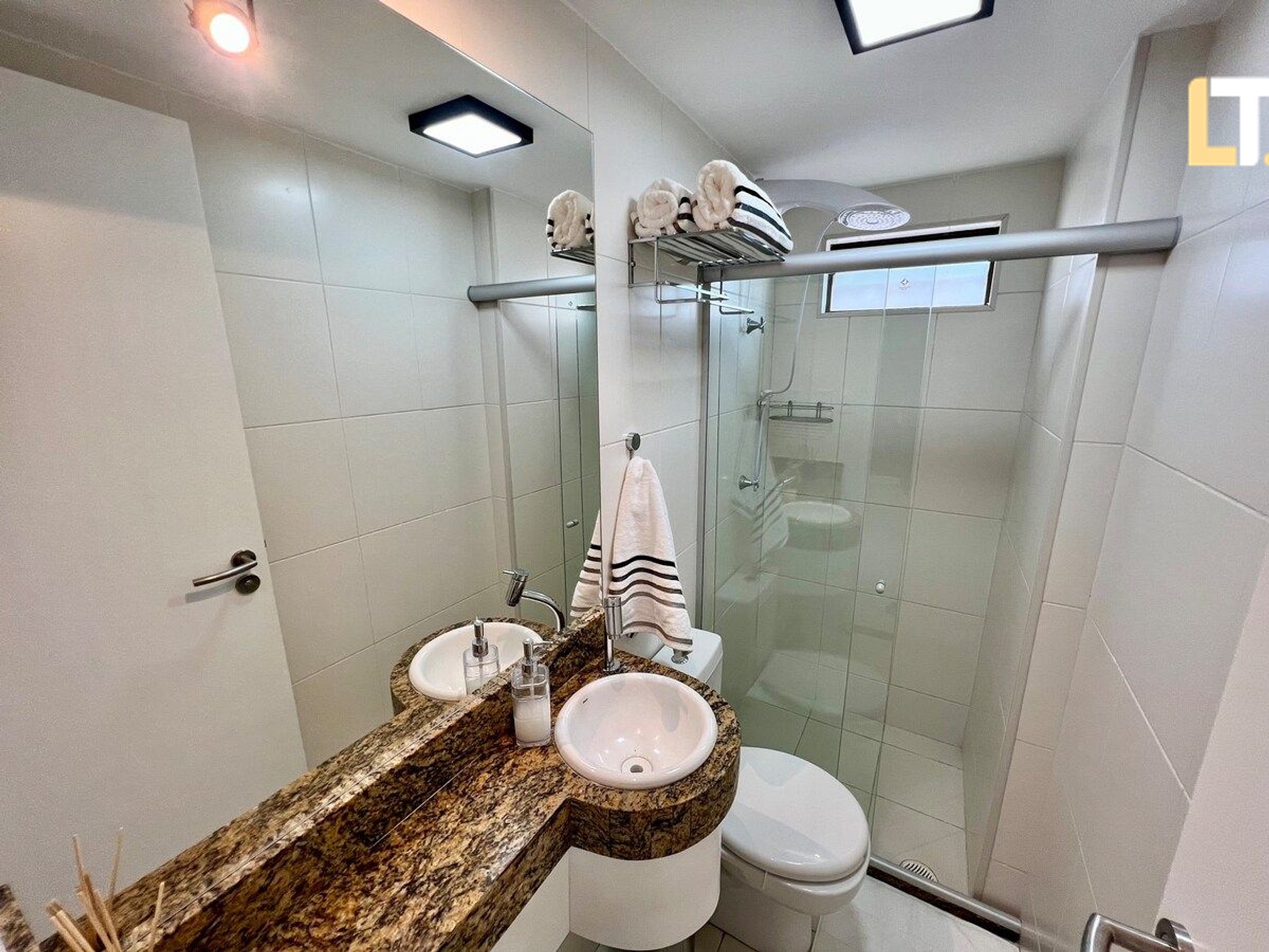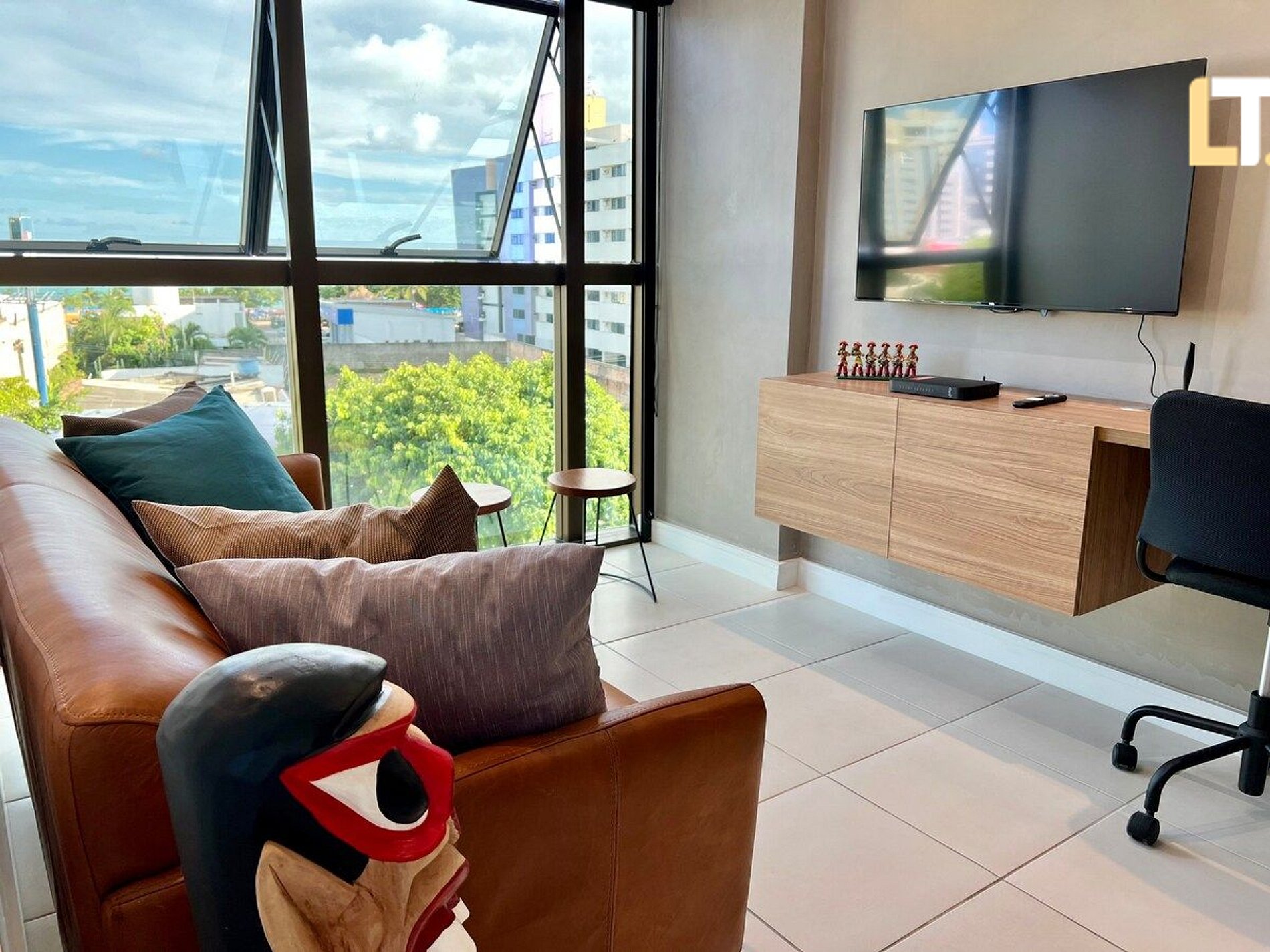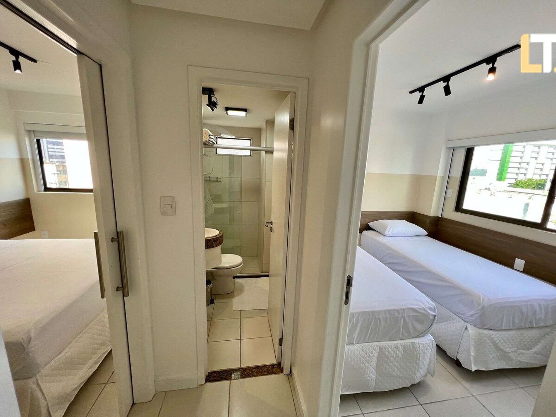 *RECEPÇÃO 24H* Recebemos você em qualquer horário *QUARTO 1 - SUÍTE + 1 Cama de casal + Espaço de trabalho exclusivo + 1 Banheiro *QUARTO 2 + 2 Camas de solteiro + Vista para o Mar *SALA DE ESTAR + Sofá + TV Smart e canais locais + Espaço de trabalho exclusivo *BANHEIROS + Chuveiro (quente/Frio) + Toalhas + Sabonete Líquido p/ as mãos * COZINHA + Fogão + Microondas + Taças + Sanduicheira + Utensílios *Disponibilizamos 1 (um) enxoval de cama e banho por hóspede.* Consulte taxas para kit extra