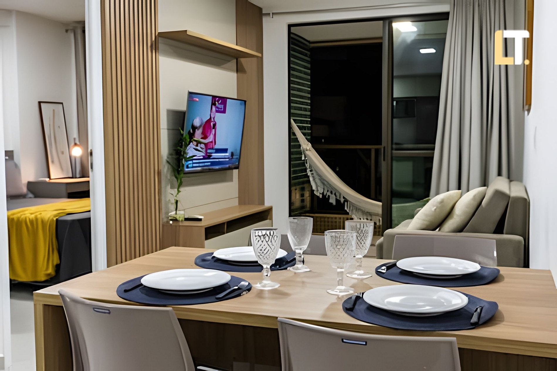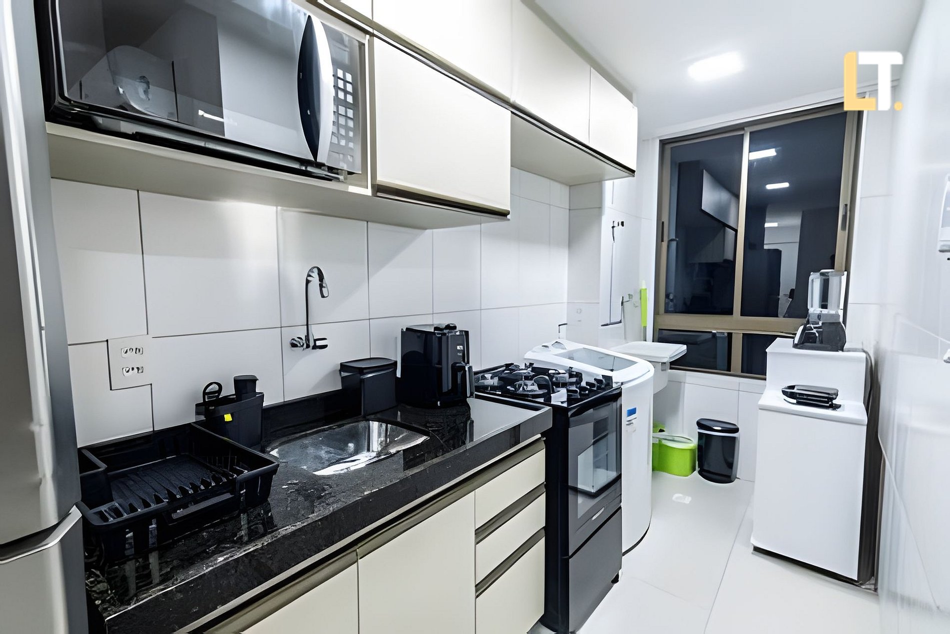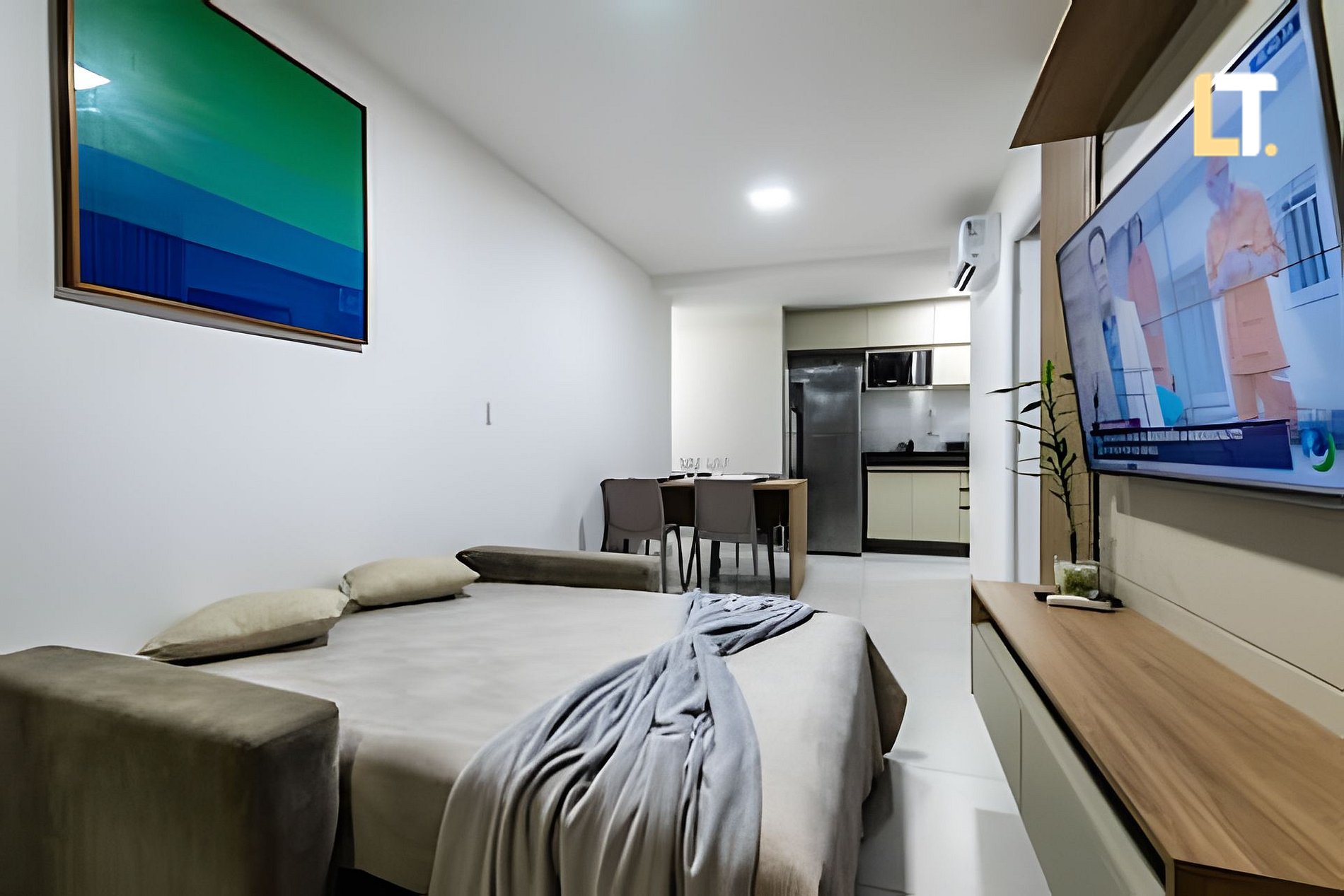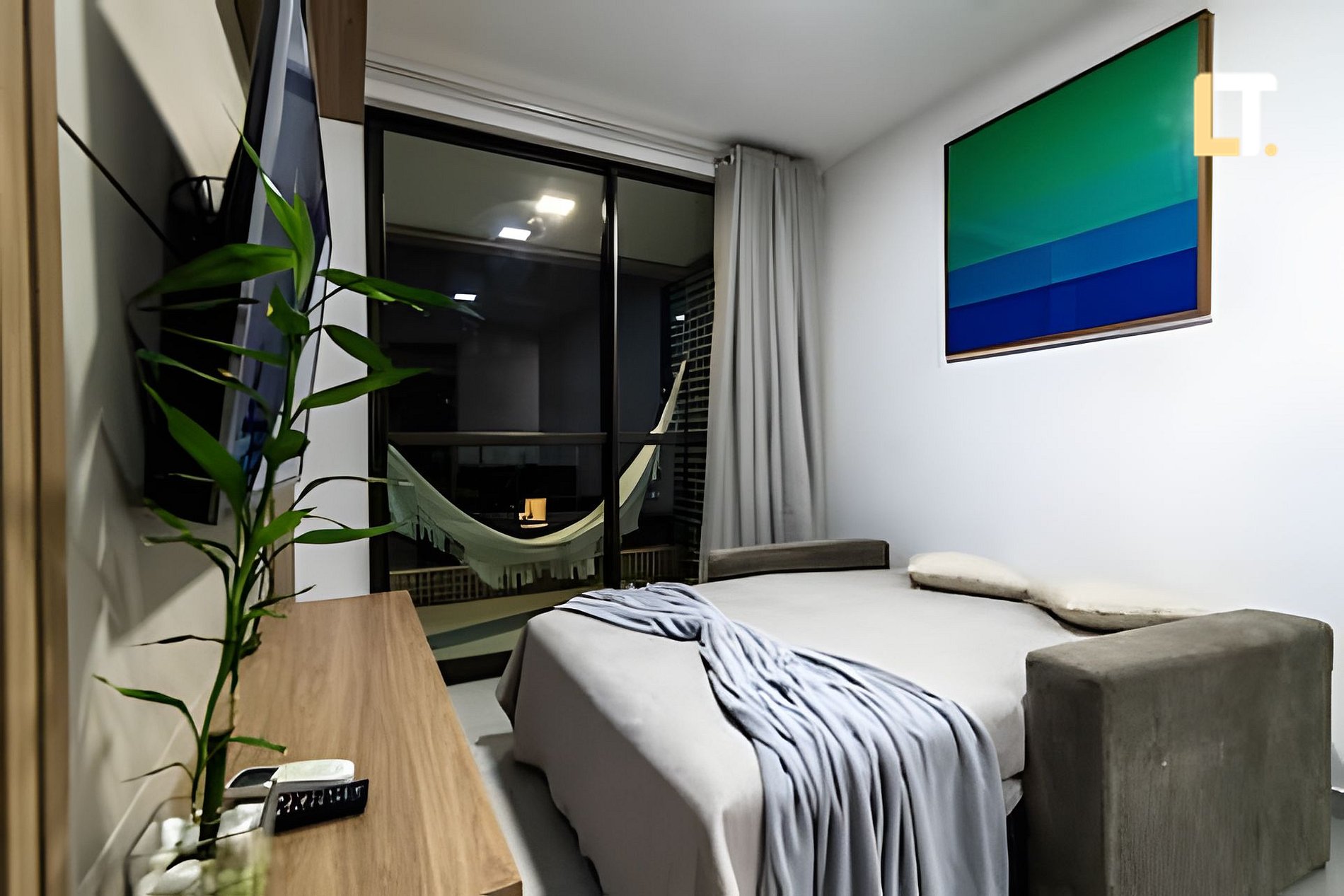 Checkin a partir das 14h checkout até as 11h *RECEPÇÃO 24H* Após o seu horário de checkin, nossa portaria receberá você. *QUARTO + Cama de casal + TV Smart + AR Condicionado + Armários + Secador de cabelo + Ferro de passar *SALA DE ESTAR + Sofá-cama (Casal) + TV Smart e canais locais + Ar condicionado *BANHEIROS + Chuveiro (quente/Frio) + Toalhas + Sabonete Líquido p/ as mãos * COZINHA + Fogão + Liquidificador + Taças + Sanduicheira + Utensílios + Coador Plástico de café *ÁREA DE SERVIÇO +Máquina de lavar +Tanque *ÁREA EXTERNA(LAZER) + Academia + Piscina + Coworking + Mercado 24h